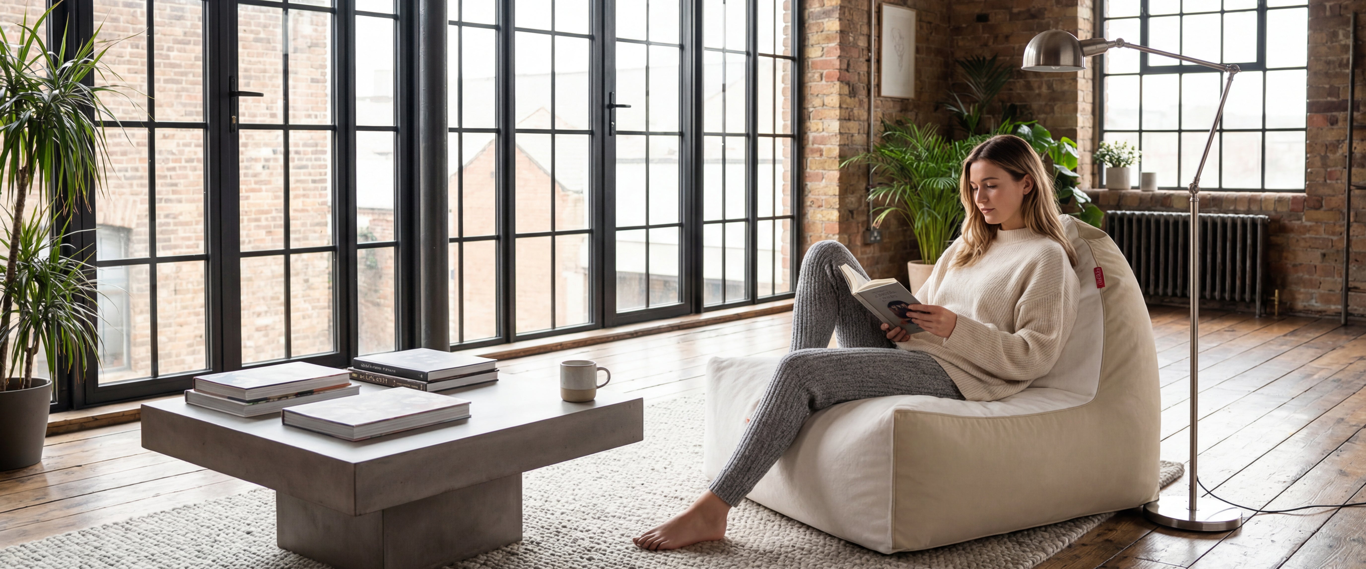 Lanny Chenille Quadro Bean bag Chair & Footrest Set - Beige