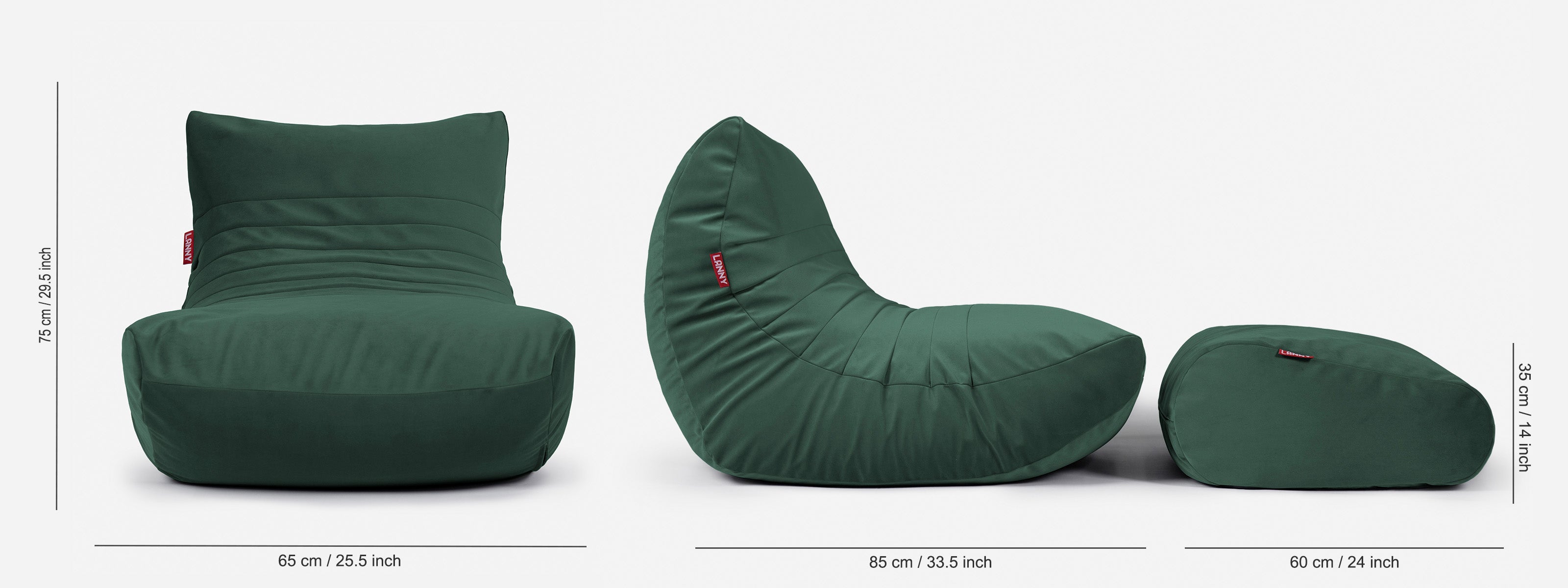 Chair Dimensions: The Curvy Lounger promotes a zero-gravity recline with its deep seat, while the high 75 cm back support ensures total full-body comfort for long periods of lounging. Footrest Dimensions: The comfortable 60 cm footrest elevates your seating experience, providing comprehensive Leg support and serving as a key component of this 2-piece Bean bag Chair set.