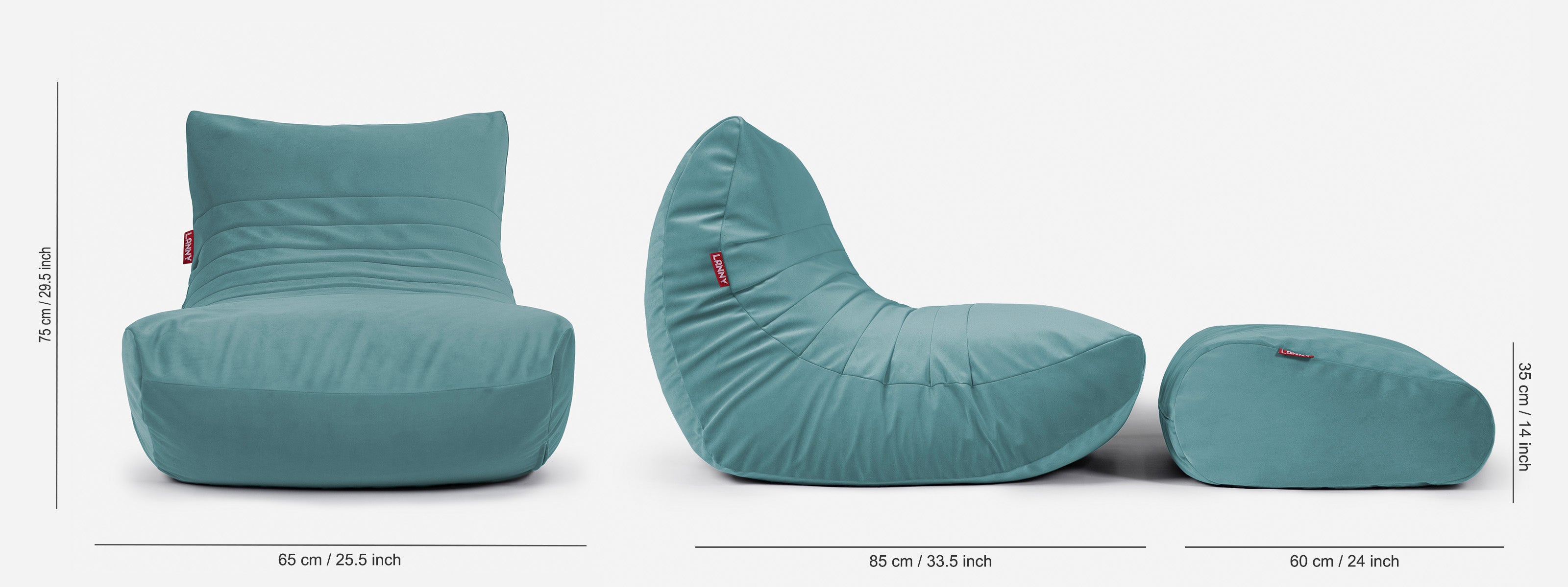 Chair Dimensions: The Curvy Lounger promotes a zero-gravity recline with its deep seat, while the high 75 cm back support ensures total full-body comfort for long periods of lounging. Footrest Dimensions: The comfortable 60 cm footrest elevates your seating experience, providing comprehensive Leg support and serving as a key component of this 2-piece Bean bag Chair set.