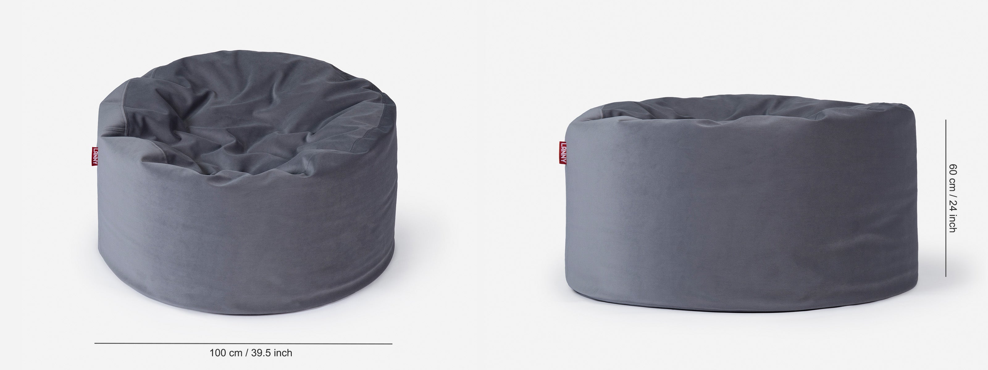 Lanny Large Velvet Original Bean bag - Gray