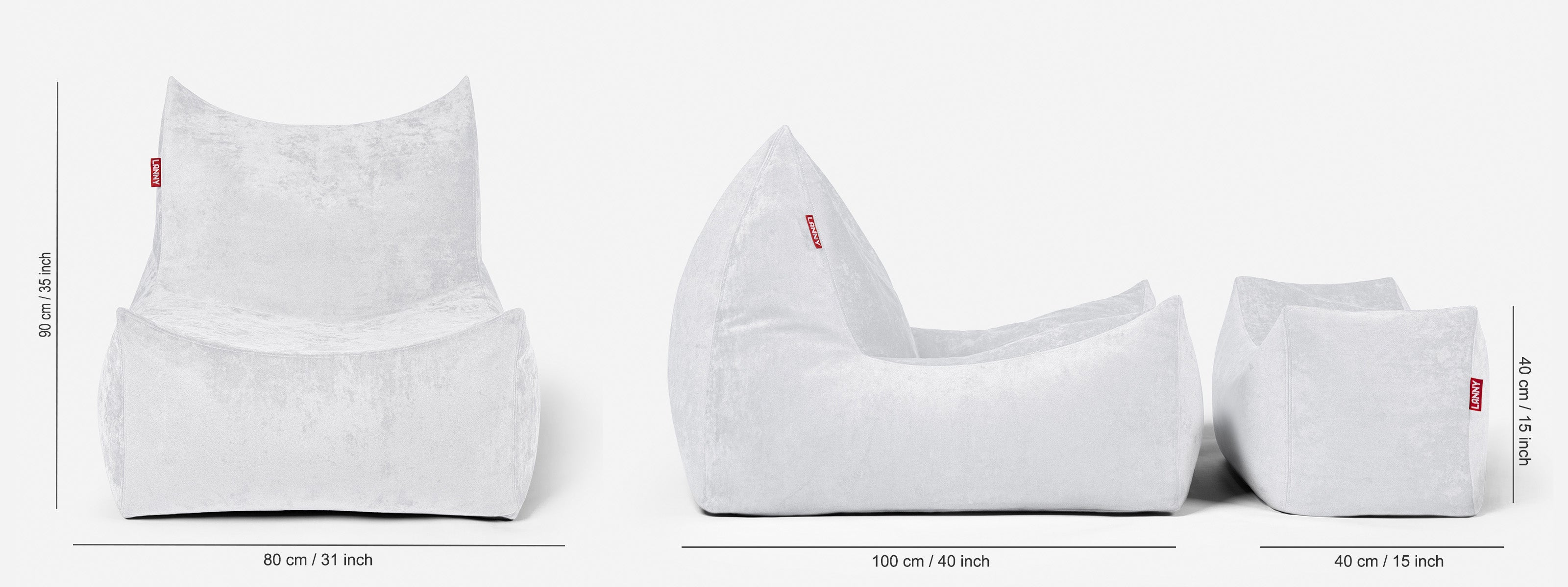 Structured Chair Dimensions: The supportive Quadro Chair features a rigid 80 cm width and a high 90 cm backrest, ensuring stable, ergonomic seating that rivals traditional furniture. Matching Ottoman Dimensions: The generous 80 cm square footrest completes the set, providing essential leg support